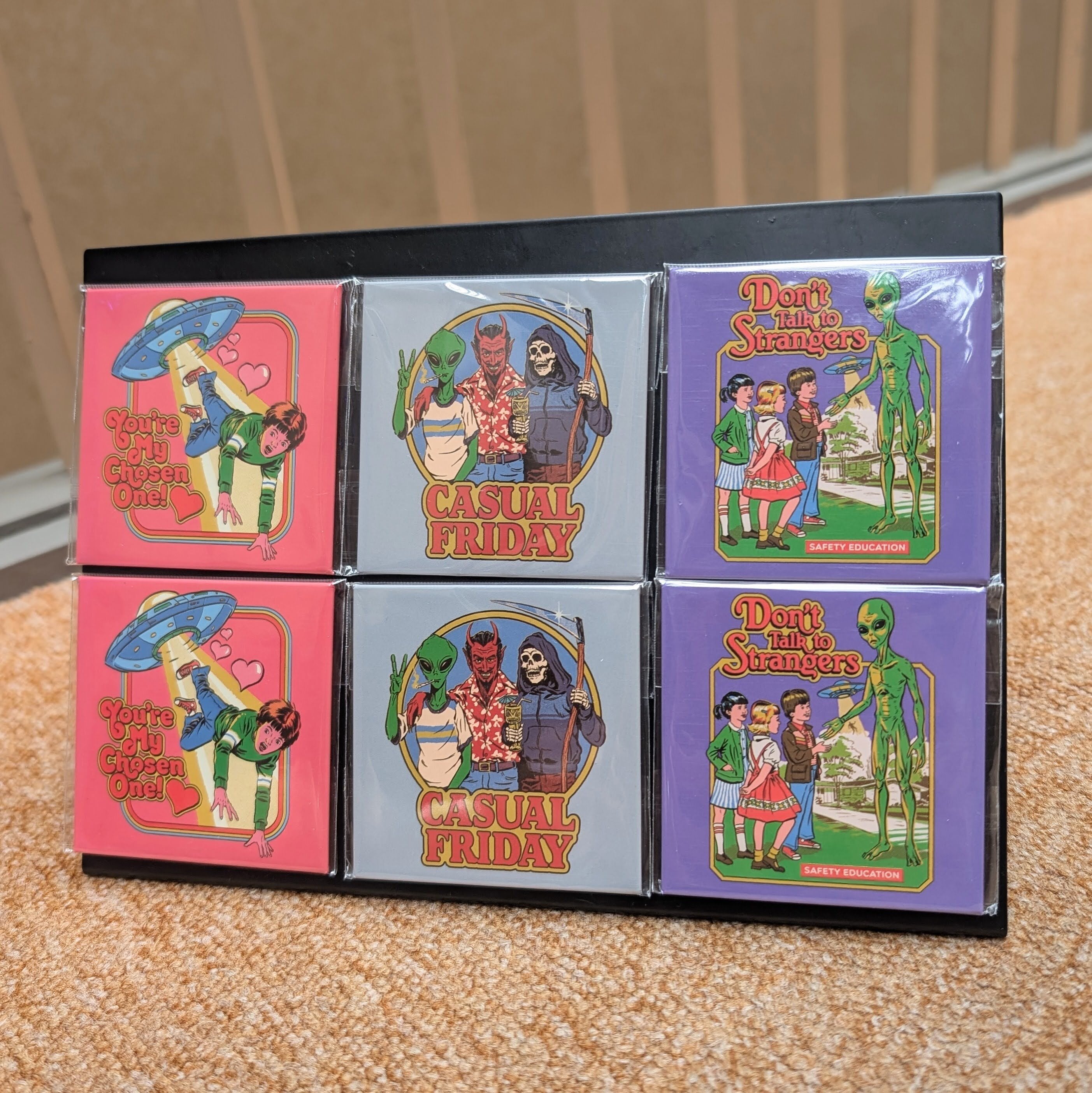 70〜80年代の教材や広告を思わせるレトロなタッチで人気のアーティスト、Steven Rhodes(スティーヴン・ローズ)によるスクエア型マグネット。