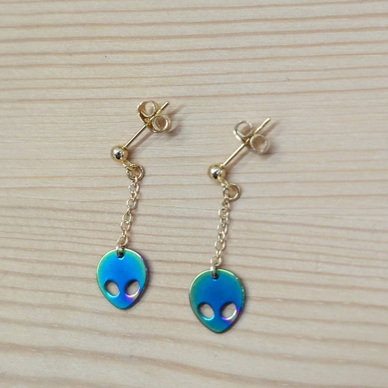 ゆらゆらと揺れる小さなエイリアンが、あなたの耳元を華やかに彩ります。