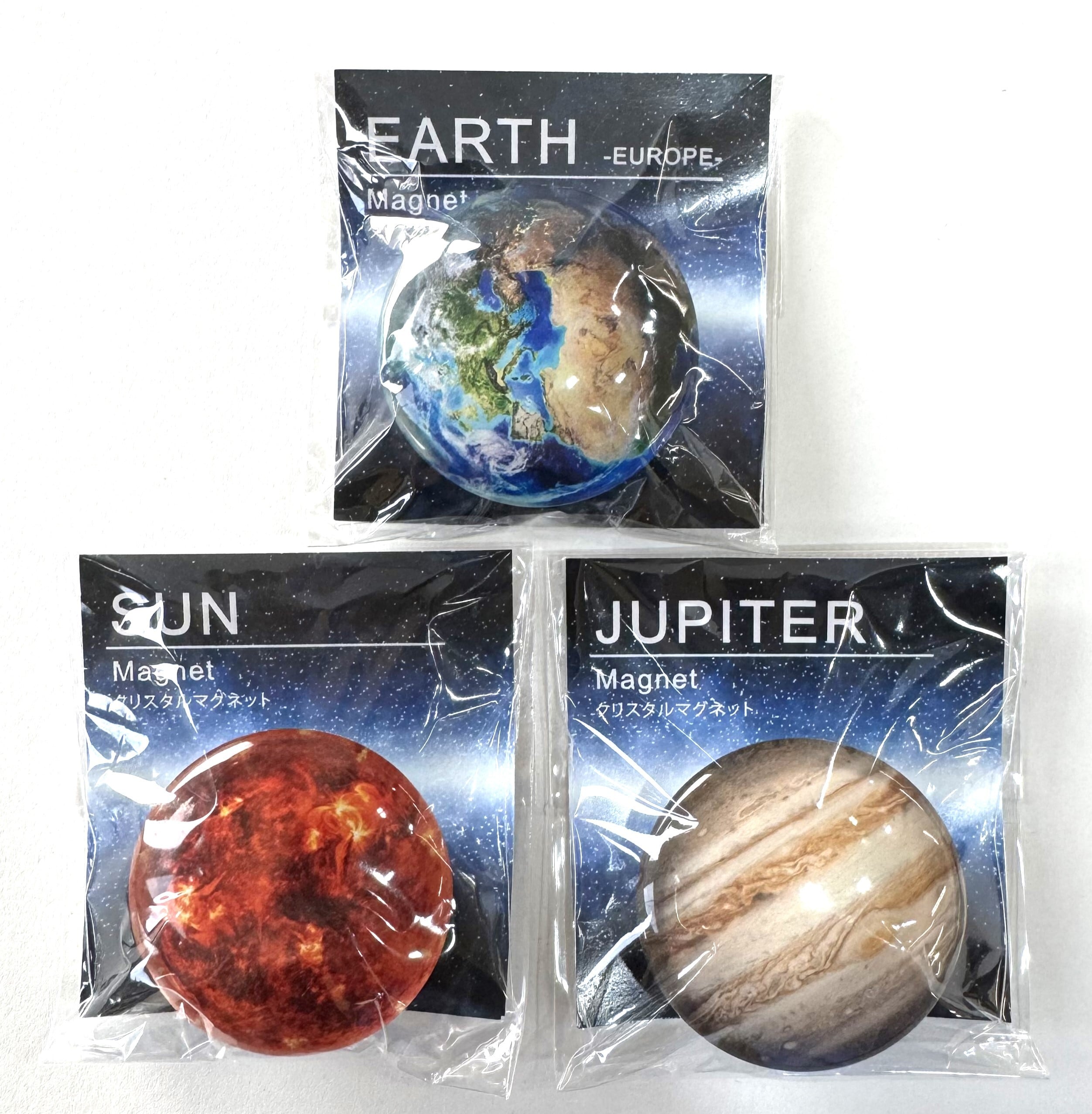 ガラス製の丸型マグネットで、地球や惑星などの美しい柄が特徴です。どんな場所に飾っても、目を引く存在感があります!冷蔵庫やホワイトボード、デスク周りなど、さまざまなシーンで活躍します。お部屋のインテリアにピッタリのアイテムです♪